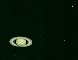 Visible are the moons (left-right) Mimas, Enceladus, Dione, Tethys, Rhea and Titan