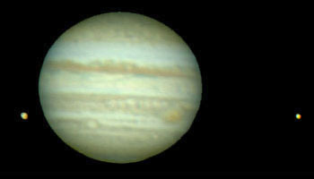 Processing: Two separate images taken sequentially, one exposed for the planet and another for the moons, layer back together in Photoshop