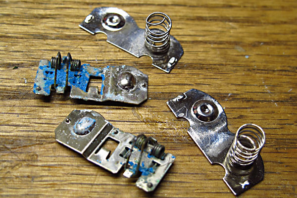 Sometimes hard to find ones that fit. It helps to have a large selection of parts at my electronics workbench. The contact I used for this repair were scrapped from another battery holder. There are a few bare contacts available… http://www.allelectronics.com/make-a-store/item/bc-133/battery-holder-contacts/1.html, but you will have to be ready to modify them or the plastic to make them fit.